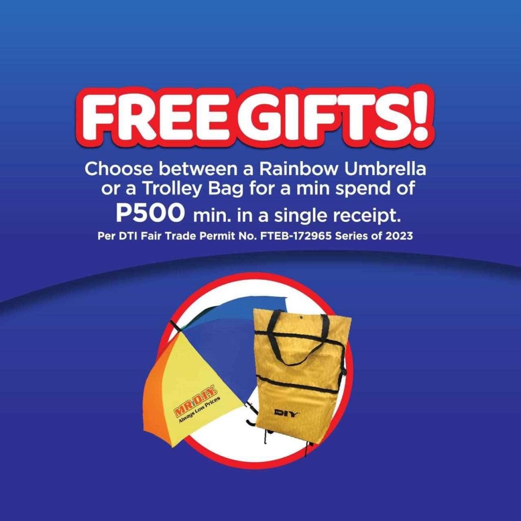 Gift With Purchase: Customers who spend a minimum of Php 500 will receive a free Rainbow Umbrella or Trolley Bag.