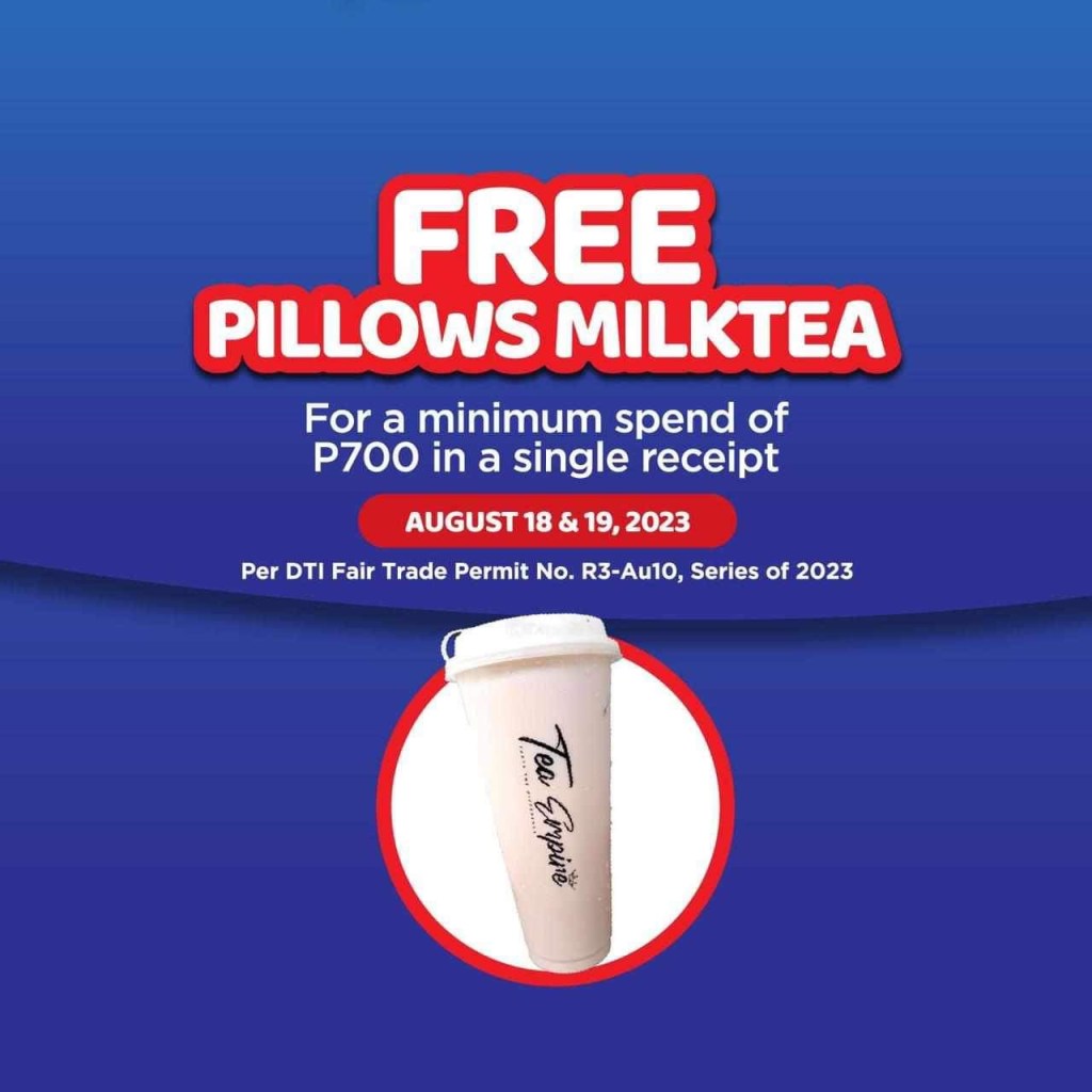 Free Milk Tea: A delightful offer awaits those who spend at least Php 700, as they can savor free milk tea from August 18 to 19, 2023.