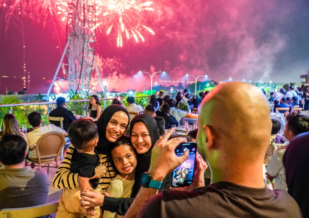 A family creates lasting memories at the Pyromusical Competition in SM by the Bay, SM Mall of Asia Complex.