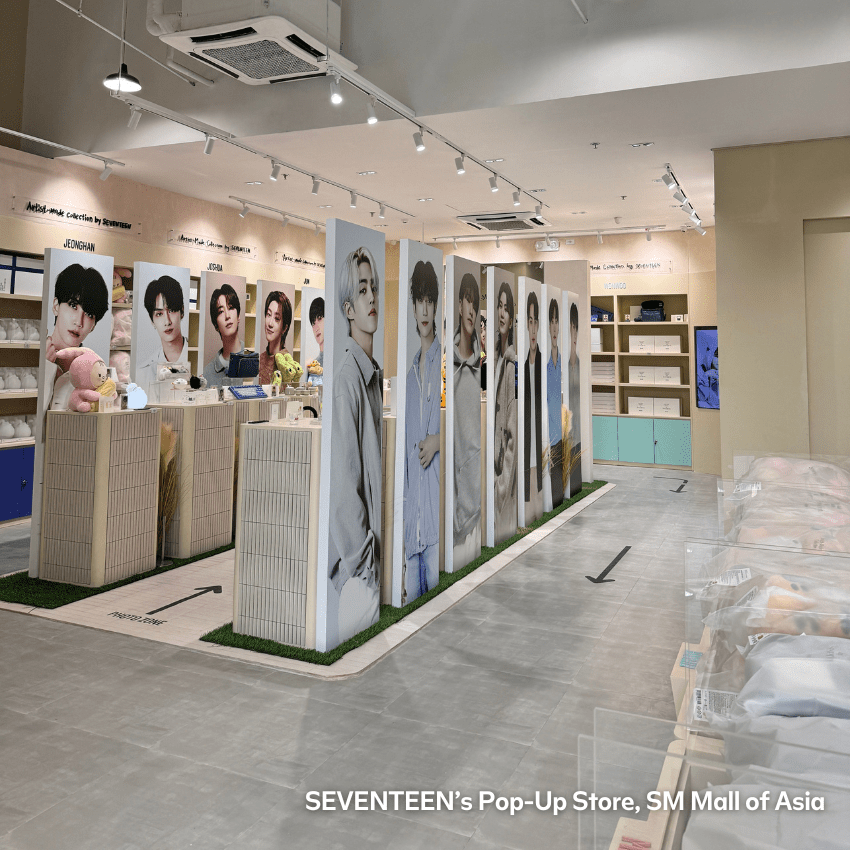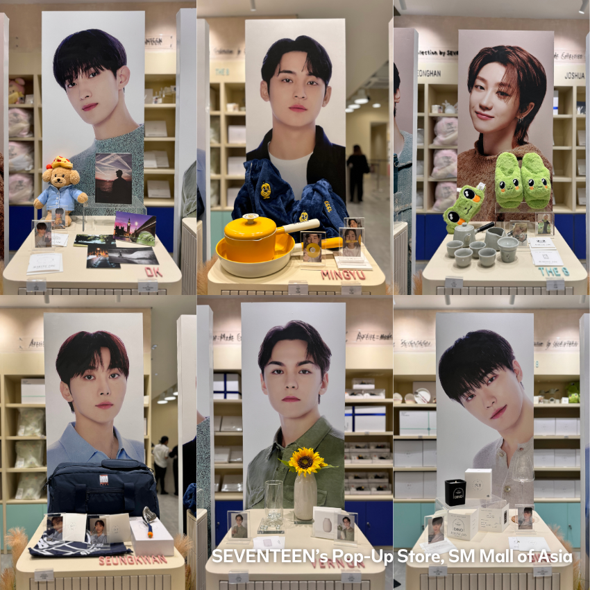 Don’t forget to take in the creative displays that showcase SEVENTEEN’s dedication to their fans. From thoughtful member-designed collections to the mini-exhibits, it’s more than a pop-up—it’s a love letter to Carats.