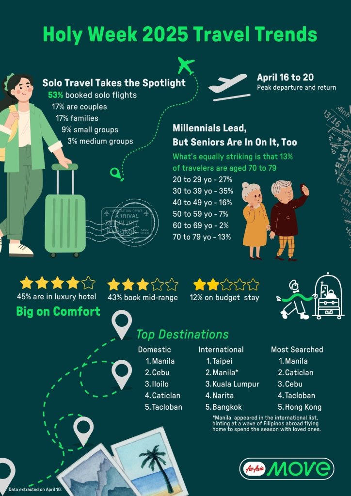 According to the latest insights from AirAsia MOVE, Filipinos are making the most of this long break to explore, reconnect, and reset, whether flying home, taking bucket-list trips, or enjoying some well-deserved me-time.