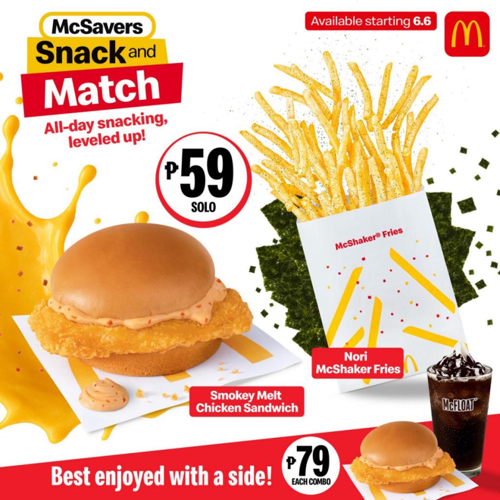 Aside from these new and exciting offerings, McDonald’s still offers Cheesy Burger McDo, McSpaghetti, Regular Fries, and McShaker BBQ and Cheese Fries as mains. These can be paired with sides such as Coke McFloat, Plain Sundae, Apple Juice, or soft drinks (Coke, Coke Zero, Sprite). The McSavers Snack and Match combos are available anytime of the day, with the freedom to choose your flavor adventure according to personalized cravings.