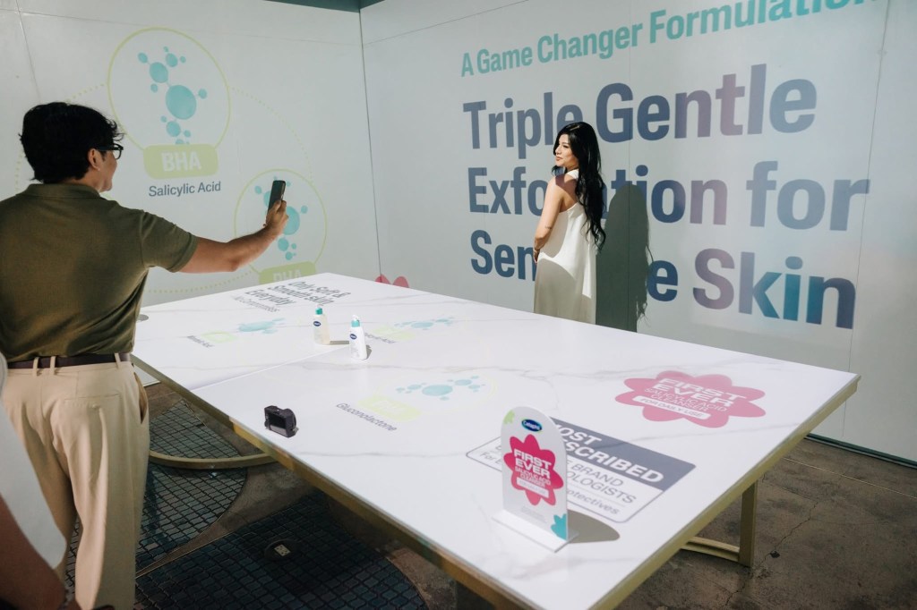 The launch event, held at Electric Garden, showcased a sensorial and informational experience, giving guests the chance to feel the difference between rough and bumpy vs. soft and smooth skin through hands-on stations and sensorial activations. One of the most popular zones allowed attendees to compare various salicylic acid-based formulations, giving a clear understanding of how Cetaphil’s gentle exfoliation stands out in both performance and tolerability.