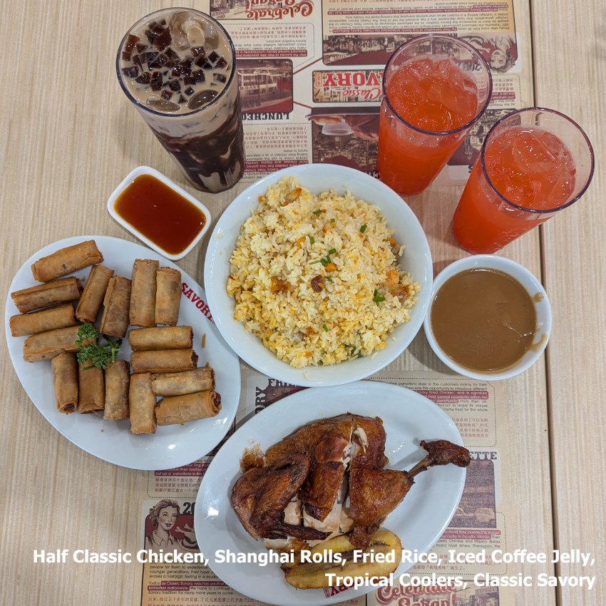 Enjoy a nostalgic dining experience that blends tradition and comfort at Classic Savory. This cherished Filipino restaurant chain is known for its signature fried chicken and diverse selection of Filipino-Chinese dishes. Crowd-pleasers include the tender and juicy Classic Savory Chicken, crispy Shanghai Rolls, and a hearty serving of Fried Rice. For dessert or a refreshing drink, their Iced Coffee Jelly and Savory Tropical Cooler offer the perfect sweet touch. As a pet-friendly space, Classic Savory makes it easy for you to enjoy their delicious dishes without leaving your furry friends behind.
