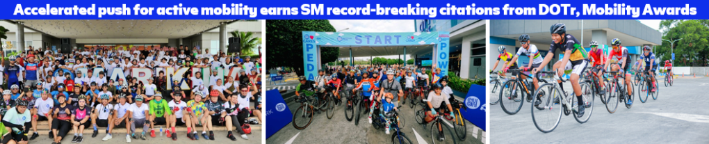 Additionally, the Department of Transportation (DOTr) cited SM’s sustainable approach as a demonstration of its leadership, innovation and long-term commitment to making active transport safer and more accessible to Filipinos. Its Pedal Power 2025 program was highlighted for this year’s Notable Advocacy Program and the SM Supermalls Sustainable Mobility and Bike-Friendly program received a citation for Notable Development by the Private Sector.