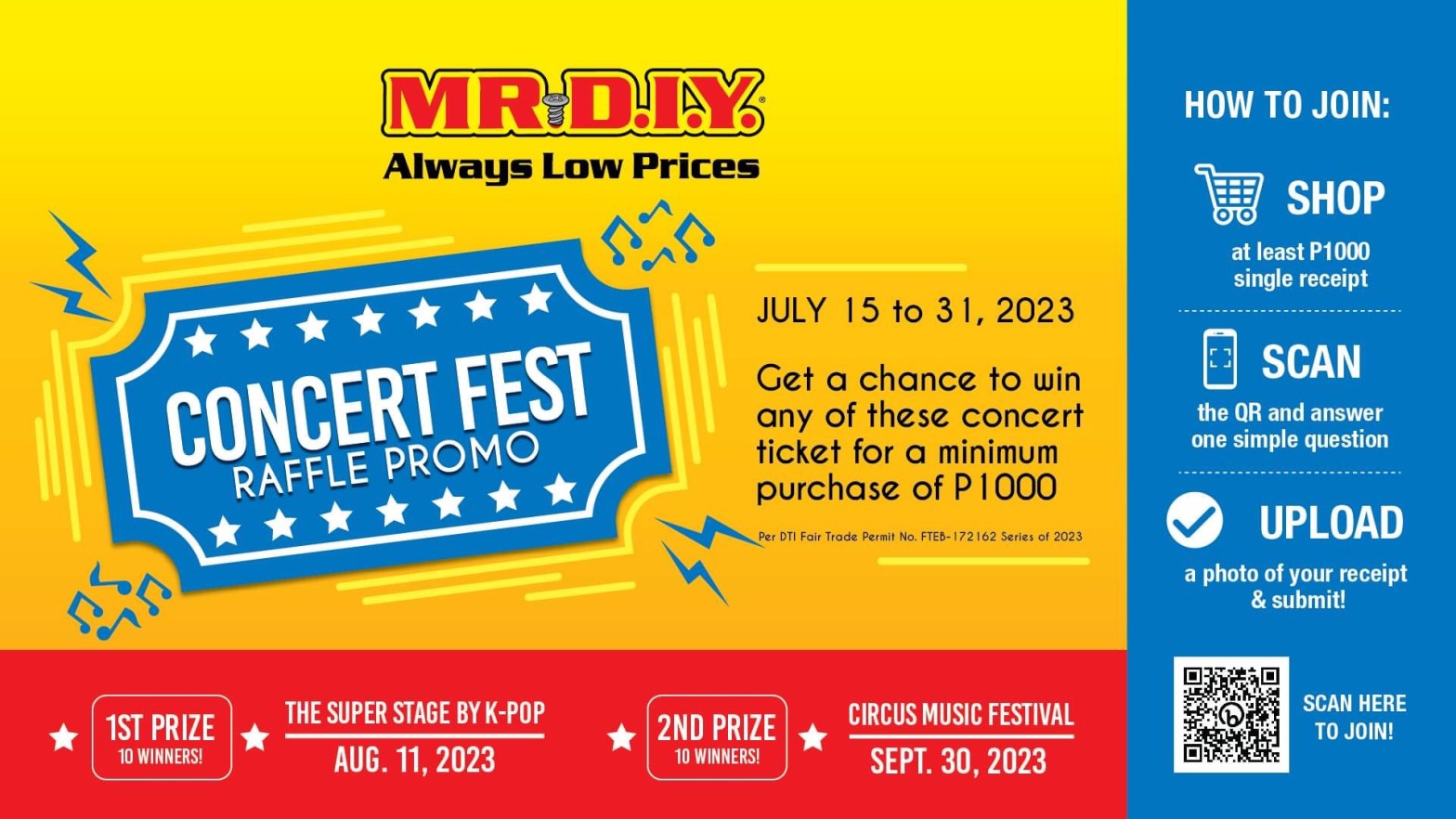 Join MR.DIY’s Concert Fest Raffle Promo to win tickets to these much-awaited music festivals! Are you ready for the concert experience of a lifetime? MR.DIY, your favorite one-stop shop, is thrilled to announce the MR.DIY Concert Fest Raffle Promo, giving you the chance to attend the most sensational music events in Manila! From July 15thContinueContinue reading “Secure your seats at the Super Stage by K-Pop & Circus Music Festival 3 with MR. DIY!”